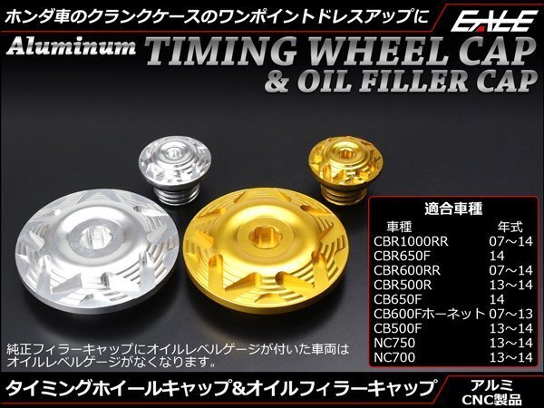 > ホンダ CBR1000RR 600RRなど用 タイミングホイール&オイルフィラー キャップ ワンポイントのドレスアップに ゴールド S-346-G