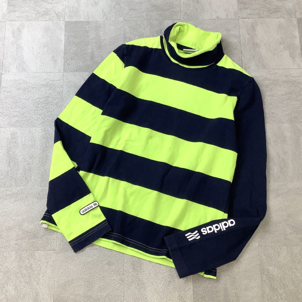 > adidas golf アディダスゴルフ ボーダー タートルネック ロングスリーブ ゴルフシャツ レディース L ライムグーン ネイビー