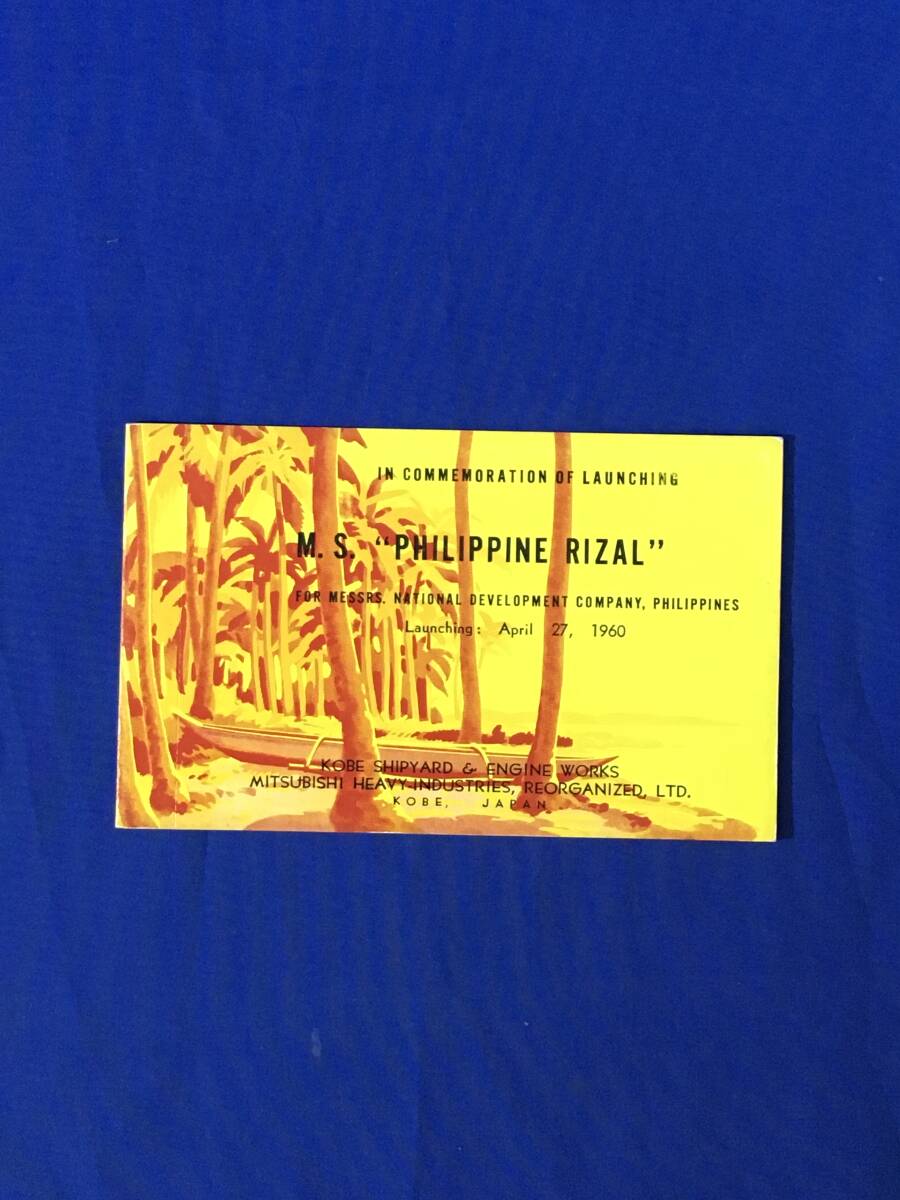 - AK650イ●海外向け/1960【外国船舶進水記念:絵葉書①】PHILIPPINE RIZAL●三菱重工 神戸造船所●昭和35年●大久保一郎●絵ハガキ/貨物船