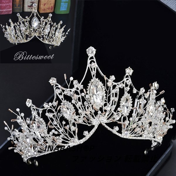 - ティアラ ヘッドドレス ヘアアクセサリー ブライダルアクセサリー ウエディング ヘアアクセ 髪飾り 花嫁 ヘア飾りパール ビジュー 花結婚式