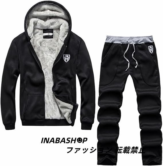 - 裏起毛 セットアップ 上下2点セット ジャージ 暖かい スウェット トラックスーツ メンズ パーカー パンツ スポーティー 秋冬 スポーツ 無地