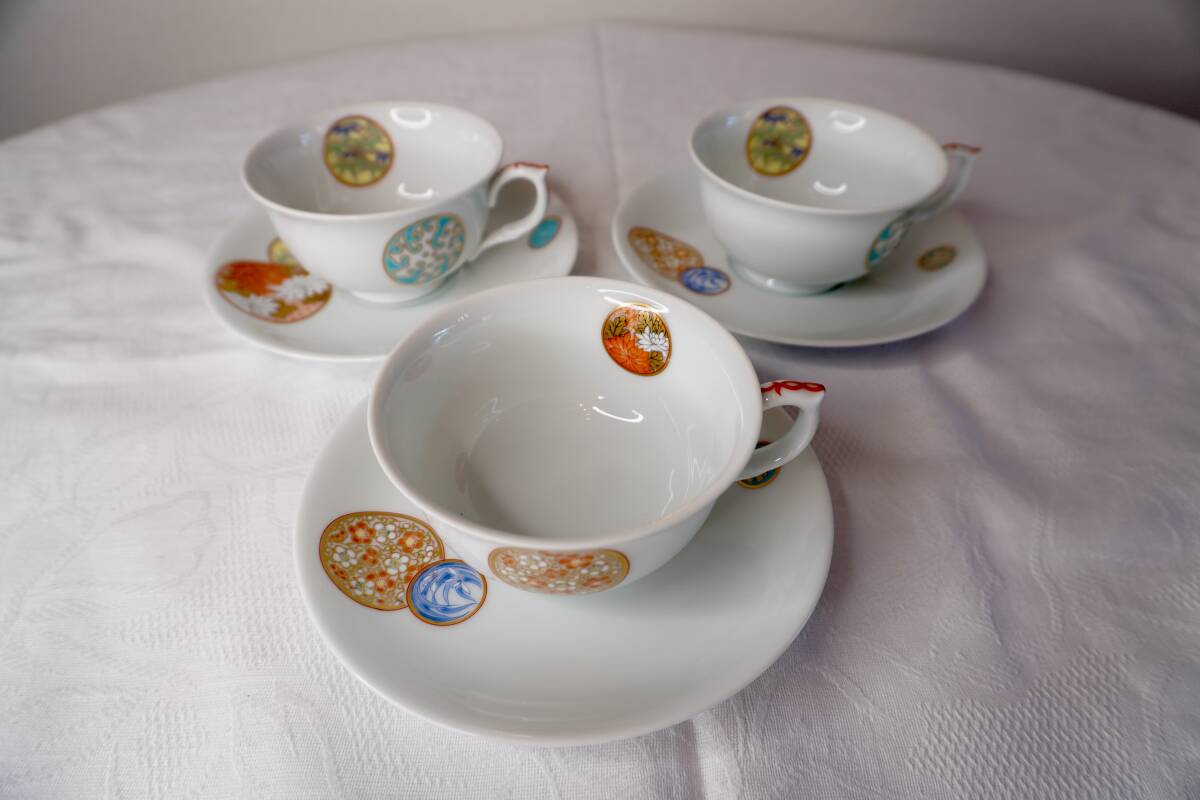 - 深川製磁 寿赤絵 カップ ソーサー 3客 ティーカップ 茶器