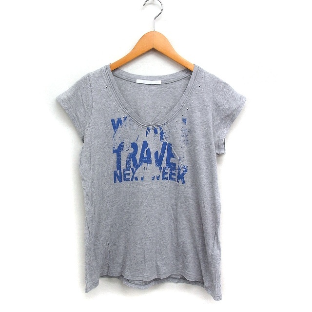 > d?dier ロゴプリント Tシャツ カットソー 半袖 Vネック コットン 綿 40 グレー 灰 /FT39 レディース