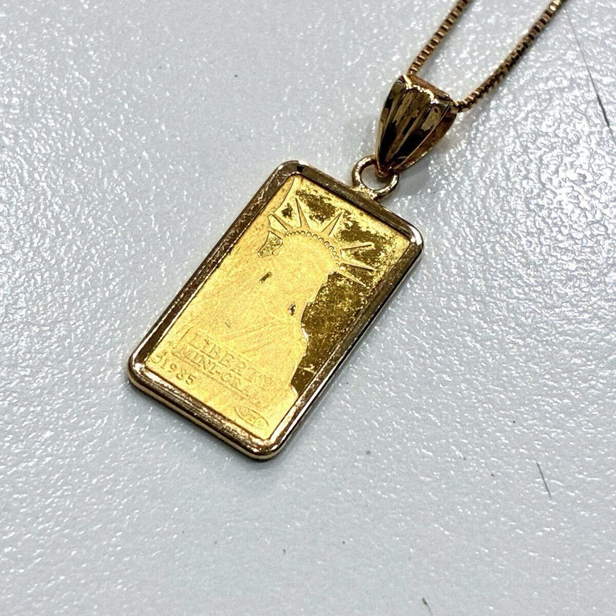 - 純金★【24金/18金】自由の女神/インゴット ペンダント 1.3g ネックレス 1.3g