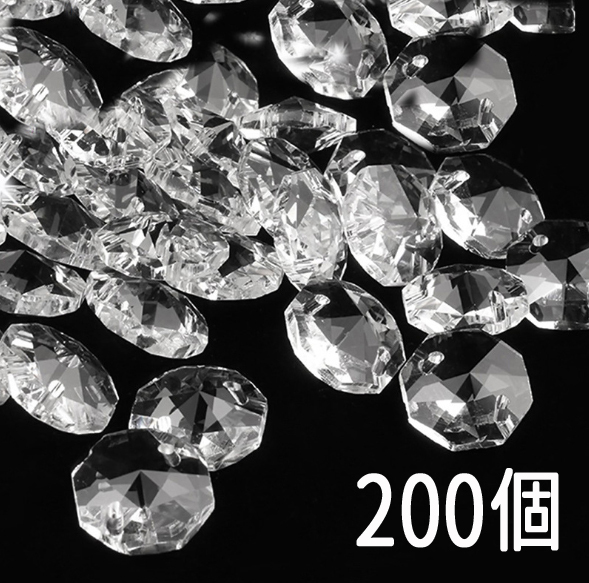 > シャンデリア 200個セット ガラス製 14mm 2穴 ビーズ オクタゴン 補修 サンキャッチャー 透明 クリスタル パーツ まとめて