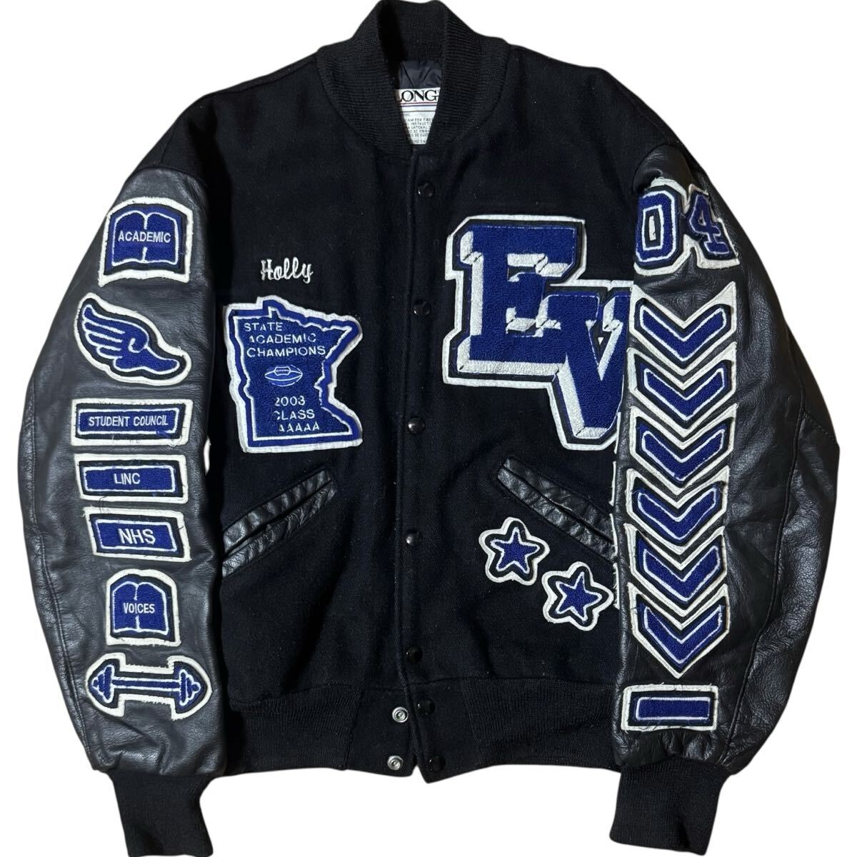 - 稀少 DeLong ビンテージ USA製 フルデコ 袖革 スタジャン バーシティージャケット Sサイズ ブラック
