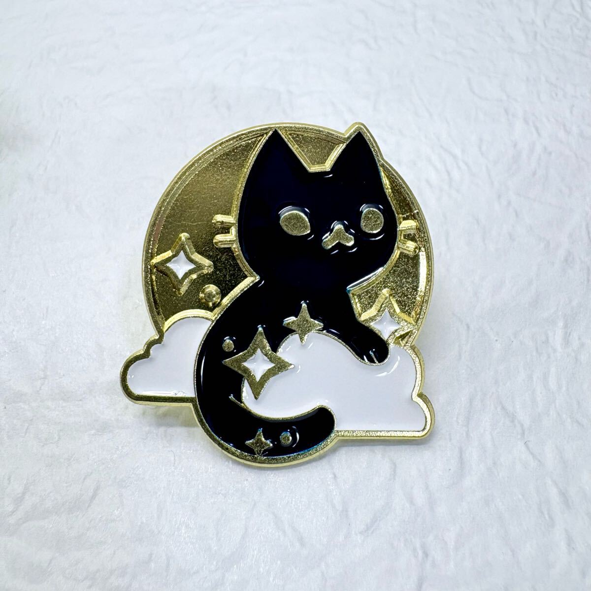 - 【ピンバッジ】満月と黒猫さん 夜空 雲の上 かわいい