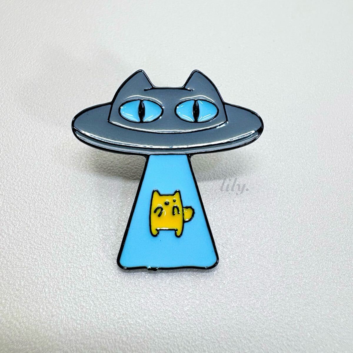 - 【ピンバッジ】UFOに連れ去られる猫さん 未確認飛行物体