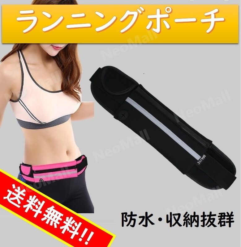 > 防水 ランニングポーチ ブラック 0-054 メッシュ 揺れにくい ウエストポーチ ウエストバッグ ランニングバック ウォーキング スポーツ