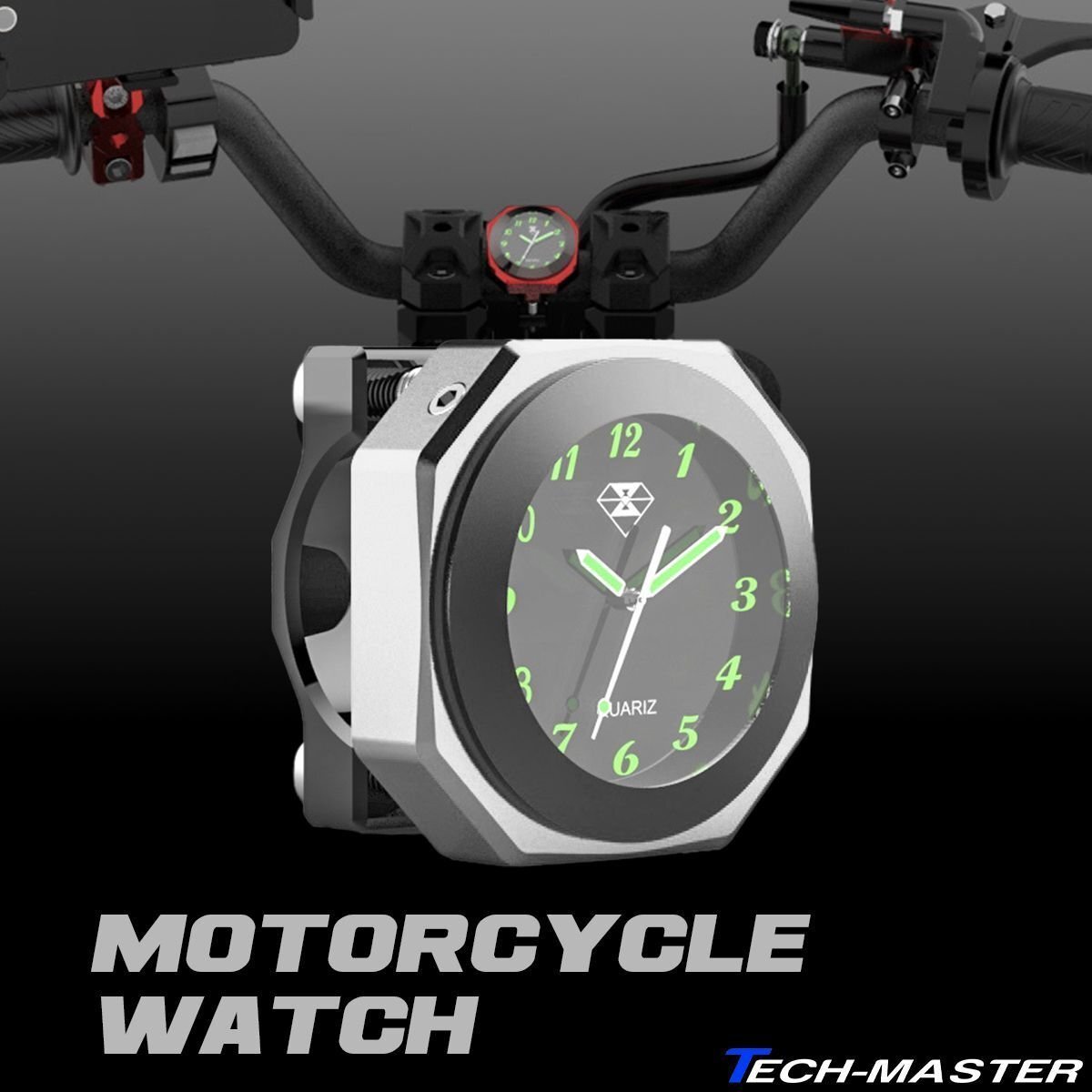 - バイク用 時計 ハンドルウォッチ 防水 蓄光 アナログ時計 アルミボディ シルバー SZ766-S