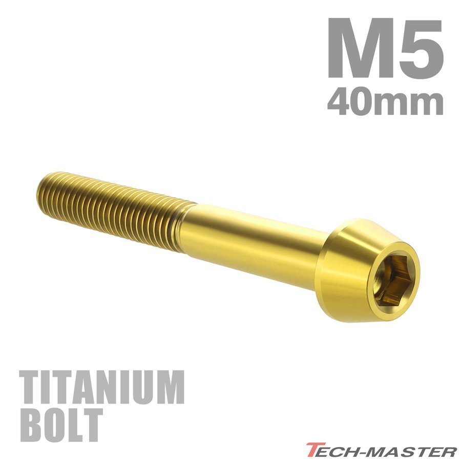 > M5×40mm P0.8 64チタン合金 テーパーヘッド 六角穴付き キャップボルト ゴールドカラー 金色 ドレスアップ パーツ 1個 JA371