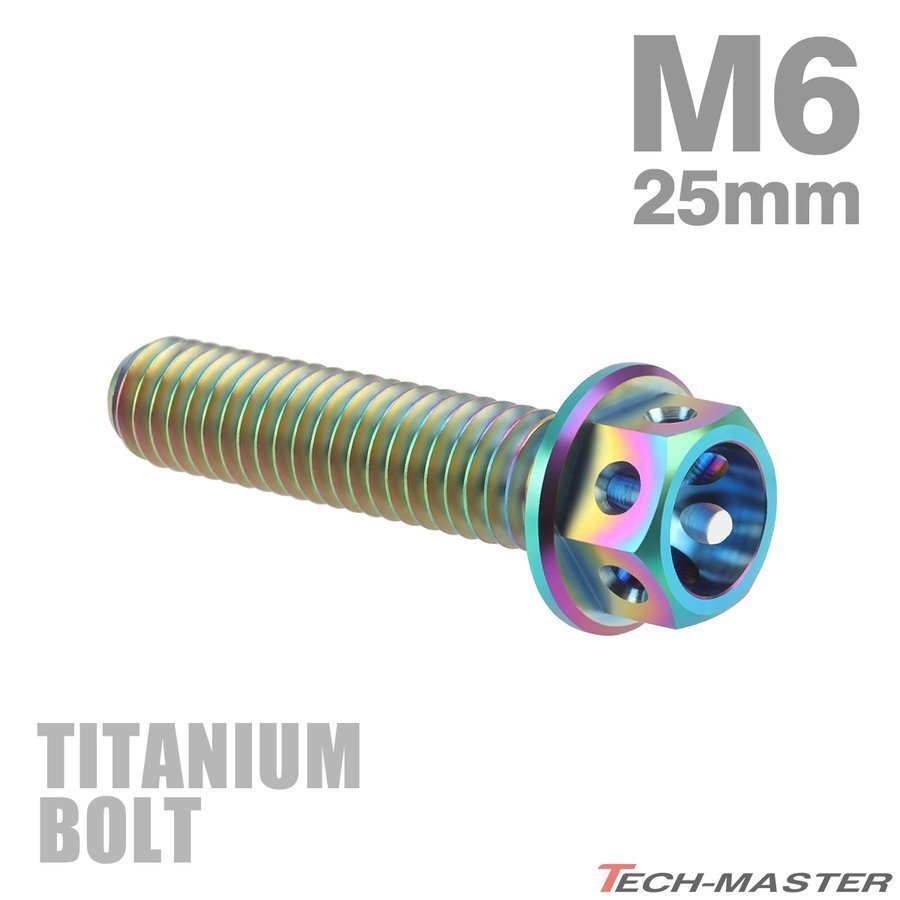 > M6×25mm P1.0 64チタン合金 ホールヘッド 六角ボルト フランジ付き 焼きチタンカラー ライトカラー 車/バイク 1個 JA785