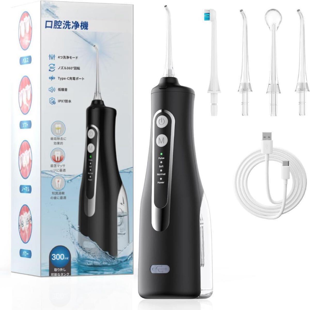 - 大特価 口腔洗浄器 ジェットウォッシャー 【歯垢除去率99.9%】 4種類ノズル付 360°回転設計 舌クリーナー搭載 300ml大容量タンク USB充電