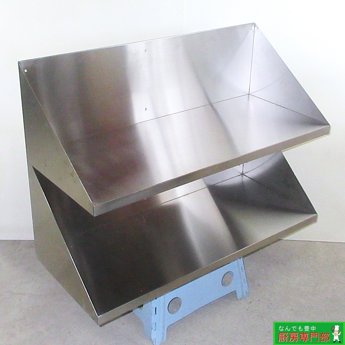- ◆業務用ステンレス製 2段平棚 壁付け食器棚 W900×D380×H640 中古厨房◆ hd493