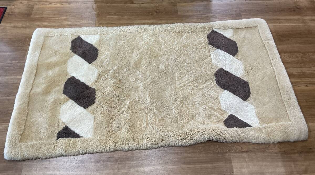 - 購入30万円!美品 本物ムートン カーペット ラグ マット 幾何学模様 ベージュ 長方形 105×202cm 厚さ4cm 羊毛 厚手 敷物 ラグ う-21