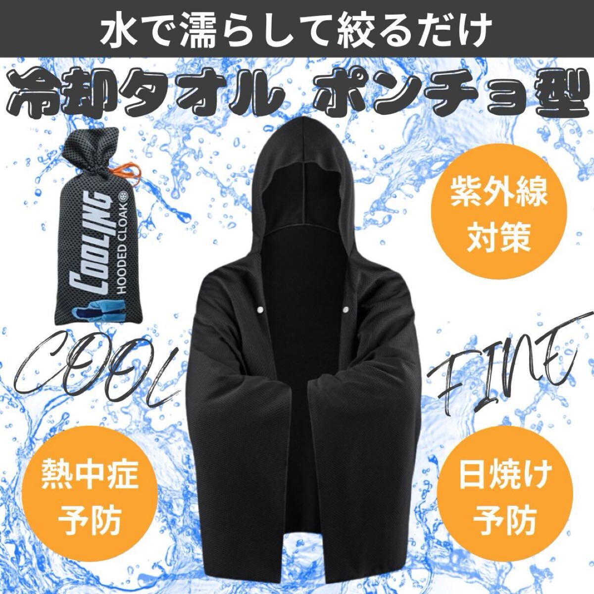 - 冷感ポンチョ 熱中症対策 冷感タオル ひんやり クールウエア ブラック
