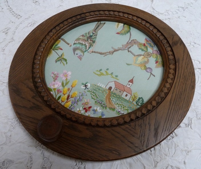 - (☆BM)刺繍 ステッチ アート ハンガーフック 壁付け ウォールフック 帽子/かばん掛 カントリーレトロ アンティーク調 鳥 花