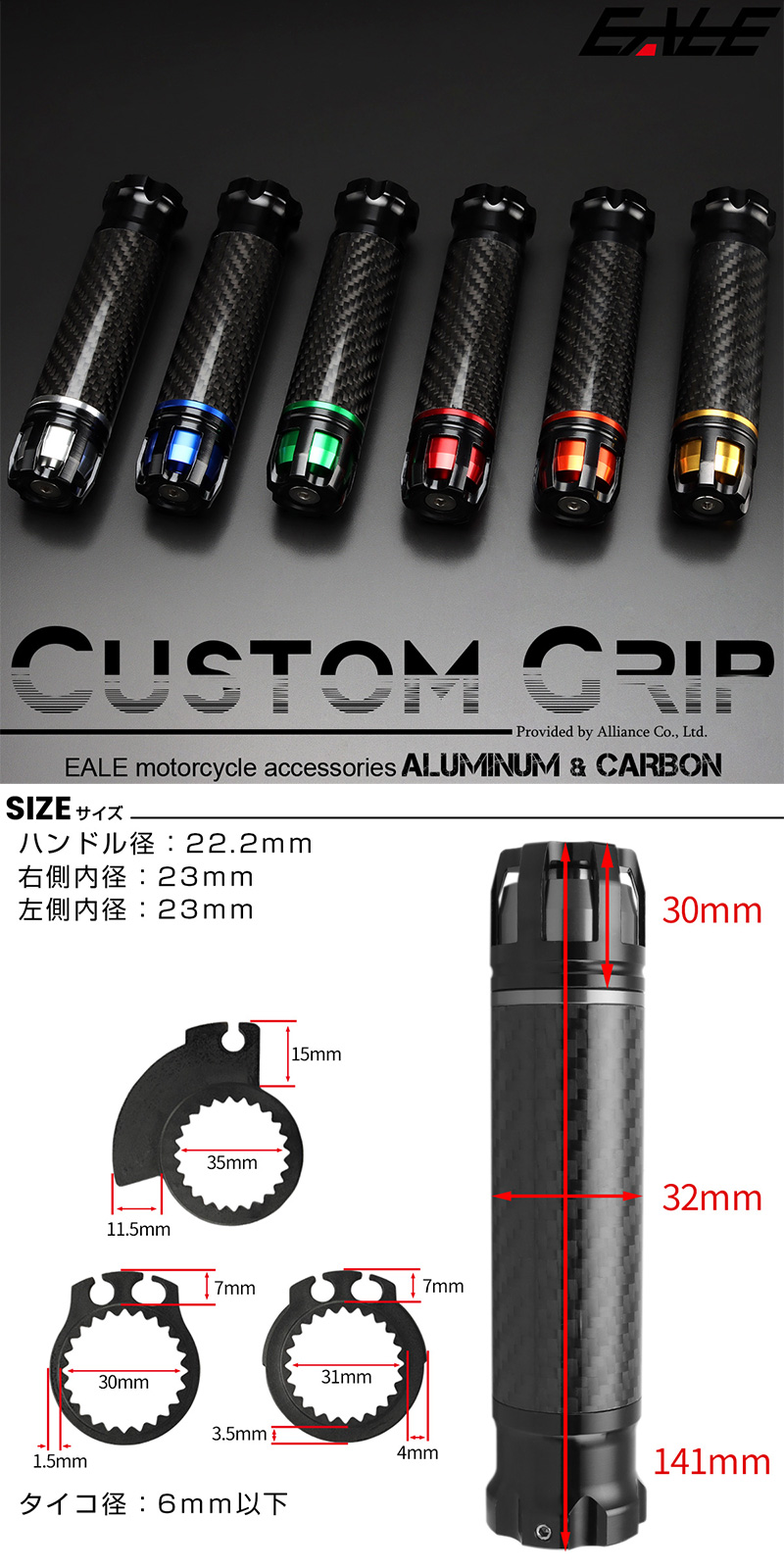 > バイク グリップ カーボン アルミ バーエンド付き ハンドル 22.2mm用 シルバー 左右セット カスタム ドレスアップ S-576-S