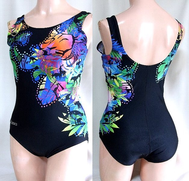 - ★☆ASICS カラフル色アニマルデザイン柄入り黒スポーツ水着☆★