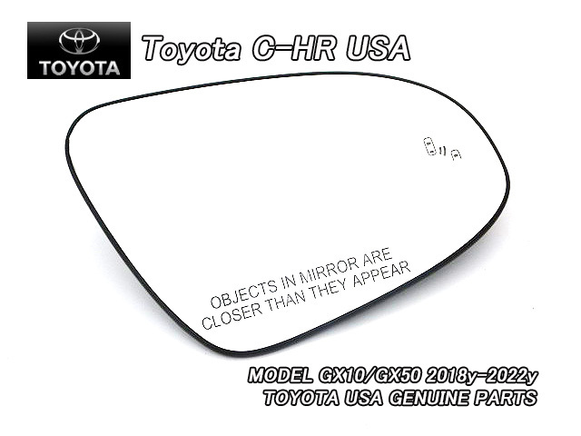 > C-HR/TOYOTA/ZGX10トヨタCHR純正USドアミラーガラス右側(BSM付)/USDM北米仕様ZYX10.NGX10.NGX50英文字入り鏡面CH-Rミラーレンズ