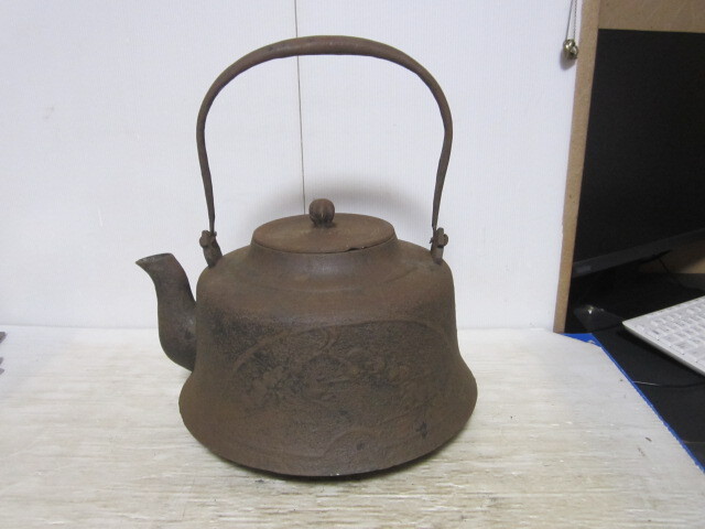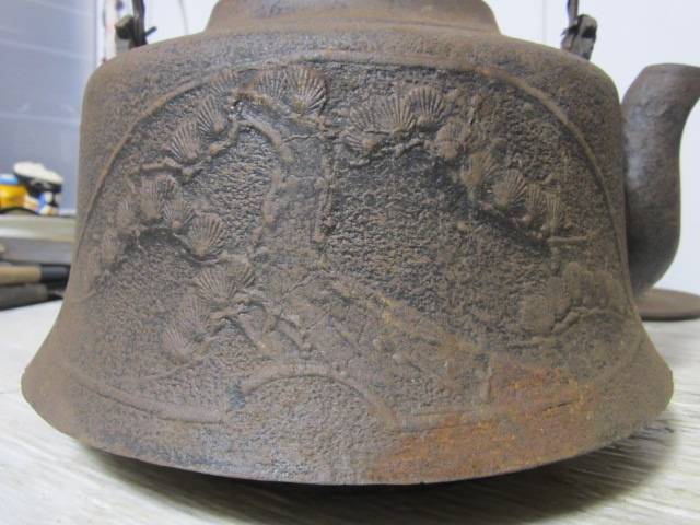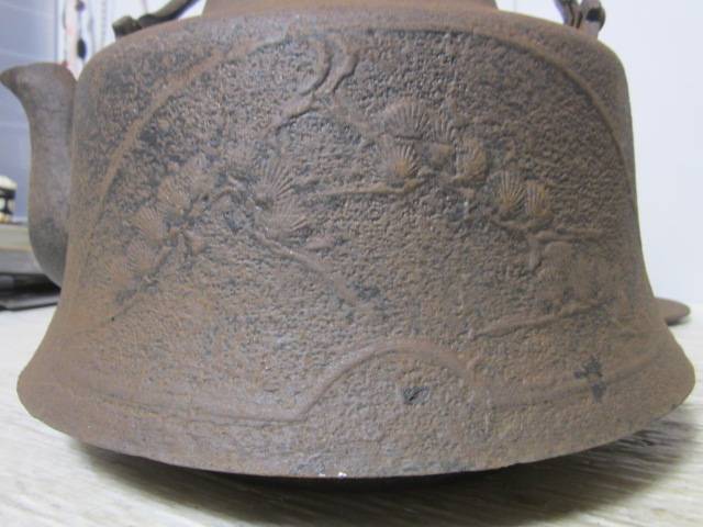 - 古鉄瓶 在銘あり 松柄 松 鉄瓶 煎茶道具 茶器 茶道具 湯沸 急須 大きめ 約4㎏
