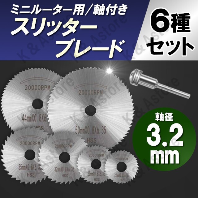 > スリッターブレード 切断ディスク 切断鋸 丸鋸刃 高速度鋼 木工 HSS鋼 6枚 マンドレル付き 軸径3.2㎜ ミニルーター リューター DIY 工具