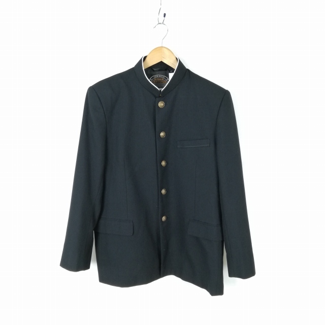 - 学生服 学ラン 175A 男子 上着 ウール混 学校指定制服 ラウンドカラー 黒 中古 ランクC a3 JJ6375