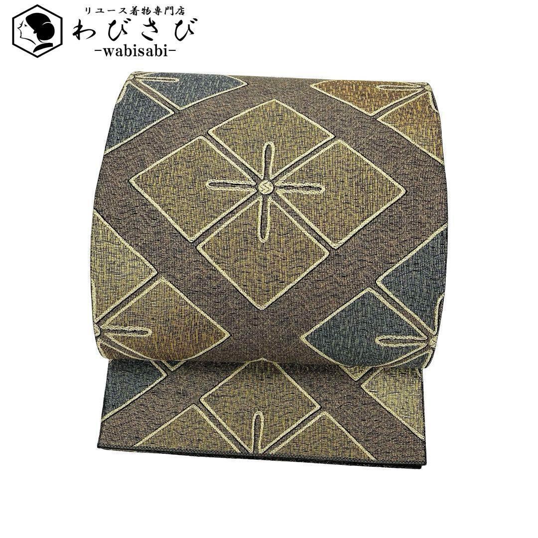 - 袋帯 菱花模様 落ち着きのある色彩 金通し 煤色 O-3690 着物 きもの kimono 和服 和装 中古 リサイクル着物 【送料無料】