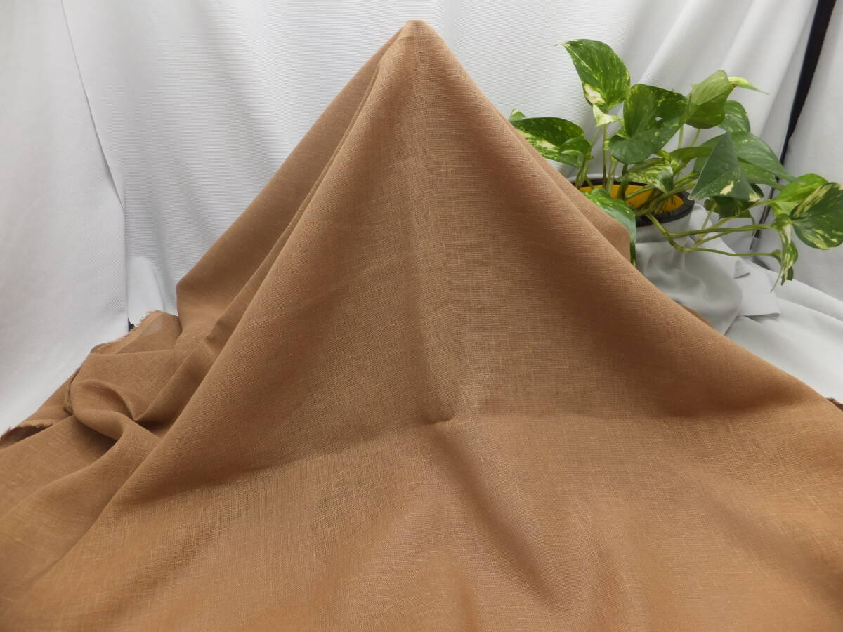 - 新入荷!掘り出し品!日本製!高級ブランドオリジナル!なかなか手に入らない上質リネン100%!サラサラ生地アンバー色 !113cm巾×1.6m強
