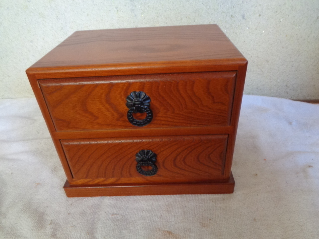 - 木製 ミニチェスト-小箪笥・小物入れ/2段抽斗/木製タンス型小物入れ/美品