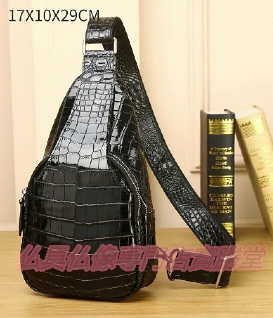 - 【寶勝堂】大好評★ クロコダイル本革 ワニレザー メンズバッグ 斜め掛け ボディバッグ 大容量 センター取り アウトドア スリングバッグ
