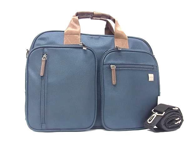 - ■新品同様■ ace エース キャンバス 2WAY クロスボディ ビジネスバッグ ブリーフケース ショルダー ネイビー系×ブラウン系 BQ0446