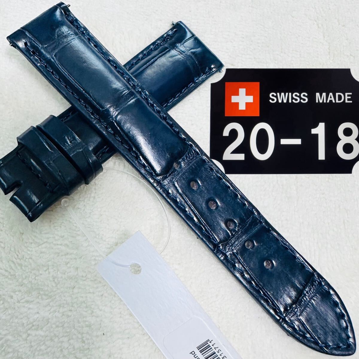 - 3067#20mm-18mmミッドナイトブルー★本物クロコダイルベルト★スイス製
