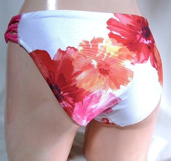 - ★☆赤ピンクオレンジ花柄入り白ビキニ水着ショーツ☆★