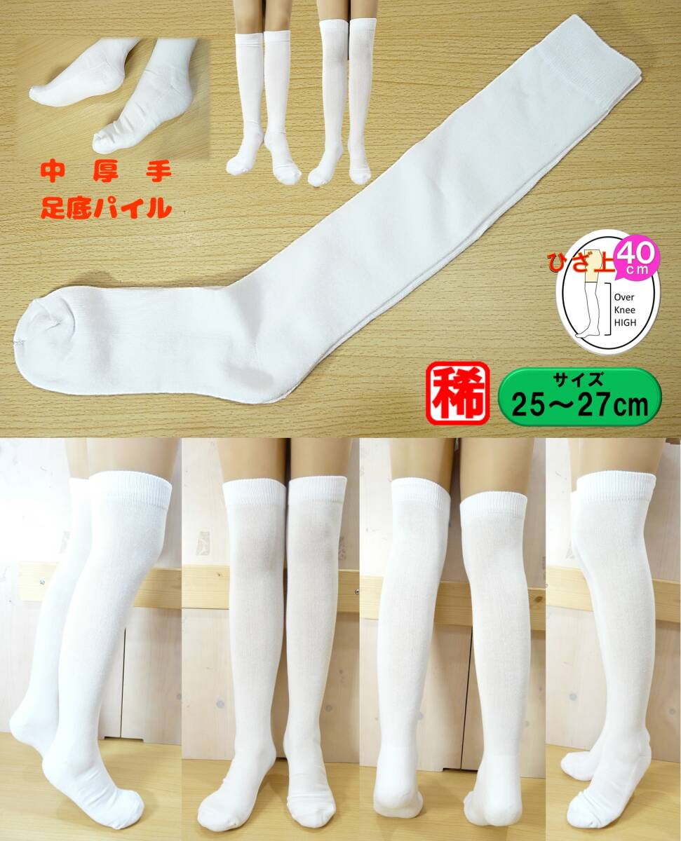 - 【レッグウェア★未使用品】野球 ソフトボール◆白 アンダーソックス◆ハイソックス◆中厚手 足底パイル◆25-27cm◆40cm丈◆ひざ上◆稀少