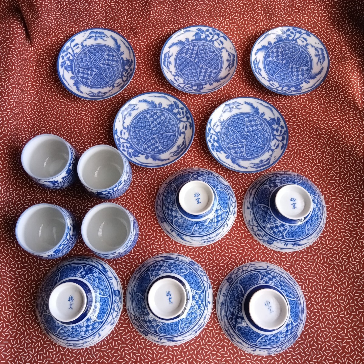 - 未使用☆稔窯 食器 セット 昭和 レトロ まとめて 茶碗 湯のみ 小皿 ※難あり 有田焼?