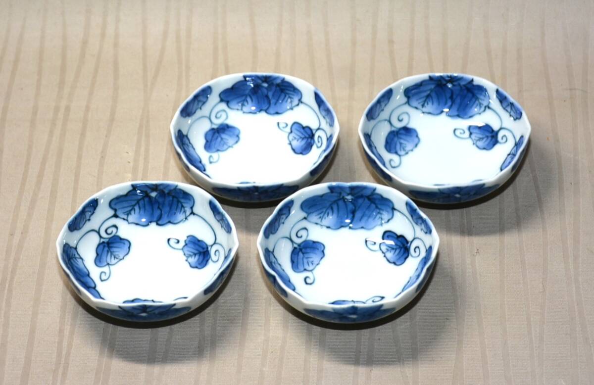 - 32◆初荷です ◆平戸焼 三川内焼 啓祥窯 染付蔦絵豆皿 5客 7.8cm ◆可愛い絵付けです 高級和食器 懐石 千代口 千代久