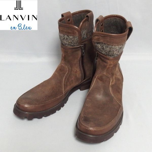 - 美品★LANVIN en blue サイドジップ スエード ツイード ショート ブーツ 86038 26.5cm 靴 シューズ ランバン オン ブルー★