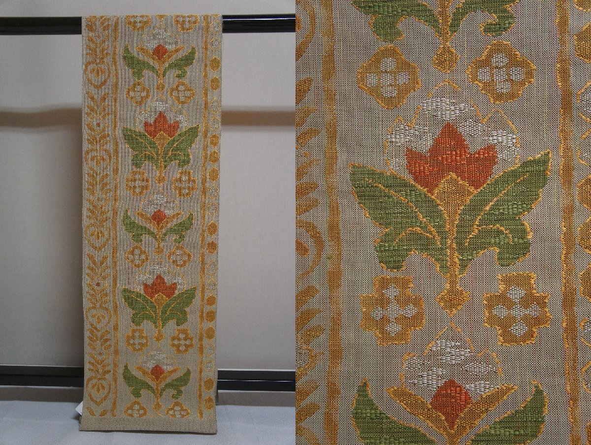 - 反物正絹?化繊?紬地蝋色霜降り地献上抽象花模様八寸名古屋帯[N16460]