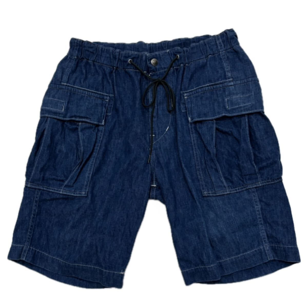 > 【 orslow 】 美品 BEAMS 別注 カーゴ デニム ショーツ ショート パンツ イージー メッシュ M 2 インディゴ 日本製 ビームス オアスロウ
