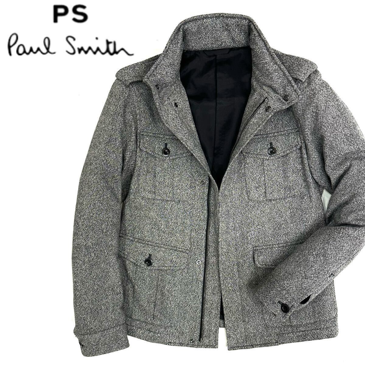 > 美品!! PS Paul Smith ウール アルパカ ツイード タイトシルエット M-65 ミリタリー ジャケット(M)グレー メンズ ブルゾン ポールスミス