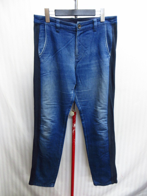 - HAT &CHICCA ラインデザイン デニムスウェットパンツ SIZE L スウェットインディゴパンツ ジョグジーンズ スウェットパンツ 日本製09043