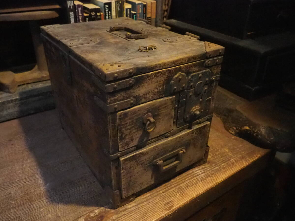 - 【明治期の鍵付き掛硯】骨董古民具箪笥囲炉裏自在鉤錠前アンティーク古道具古道具インテリア収納ケース水滴薬箱銭函収納ケース書道