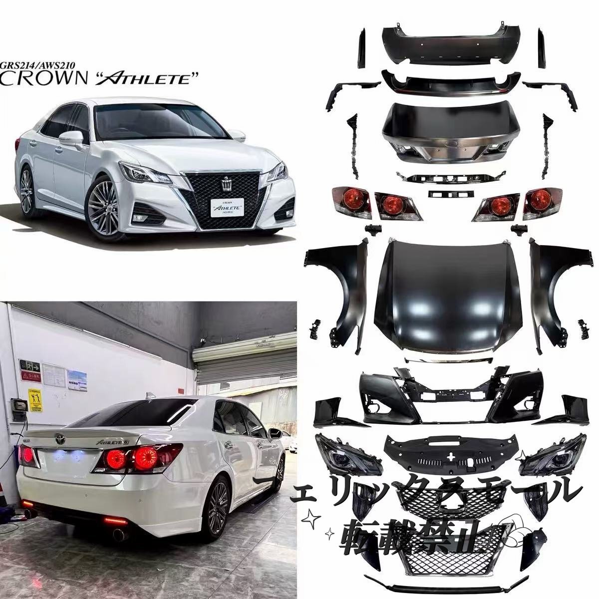 > 【クラウン 14代(2015-2018年式)アスリート仕様 フルエアロキット 前後バンパー+ヘッドライト+テールランプ 外装コンバージョンセット