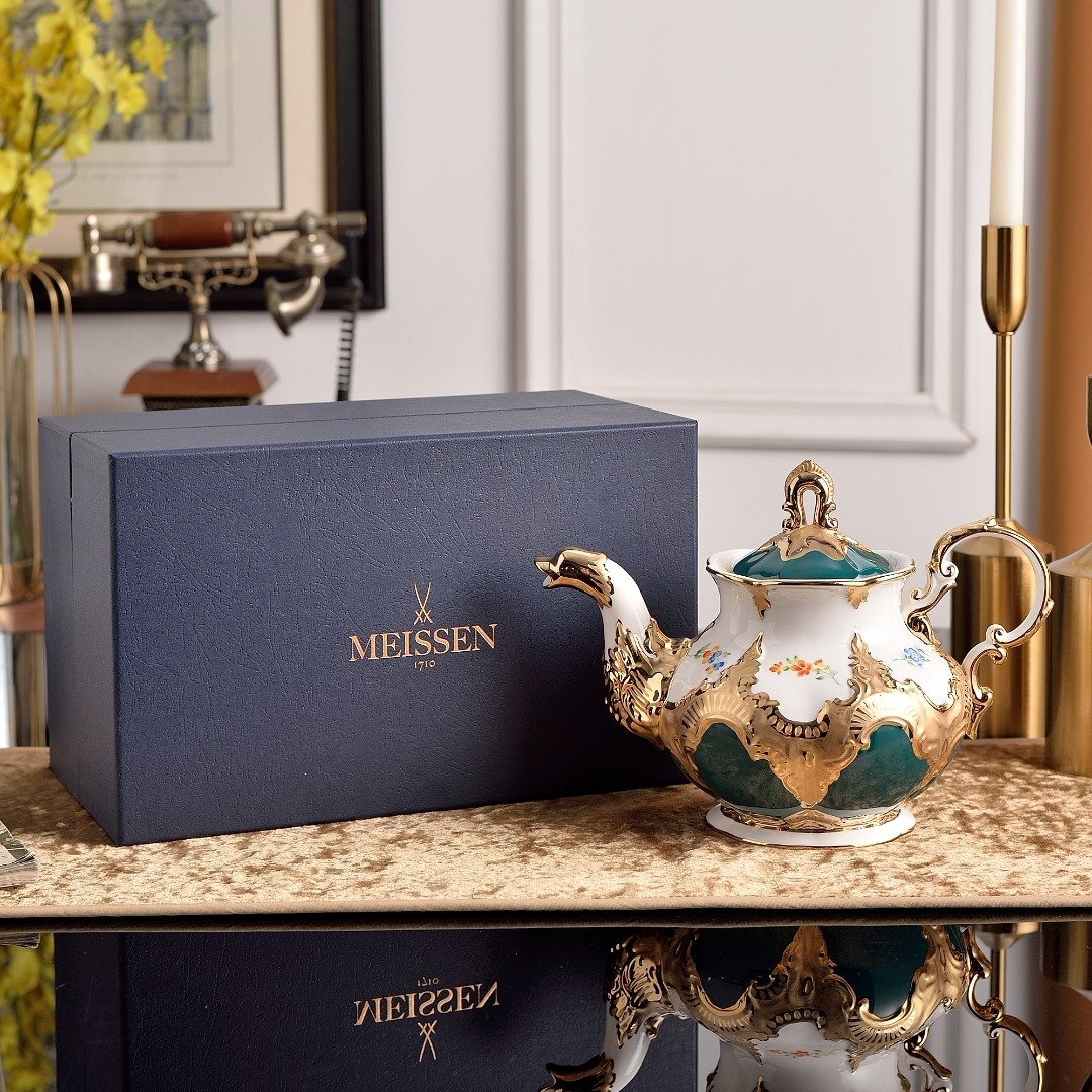 - MEISSEN B-FORM マイセン テイーポット 洋食器 アフタヌーンティー グリーン 箱付き 刻印付き ms0377