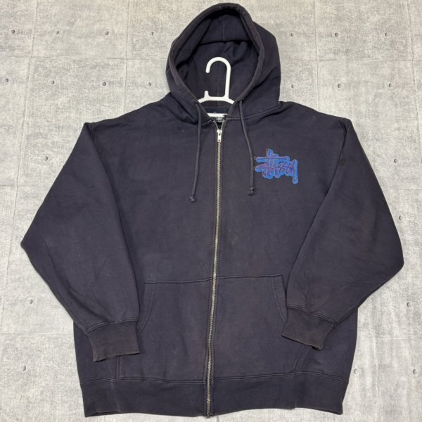 > USA製 90s 00s STUSSY 紺タグ フルジップパーカー ステューシー 90年代 00年代 両面ロゴ フーディースウェット OLD vintage 石瀬7203