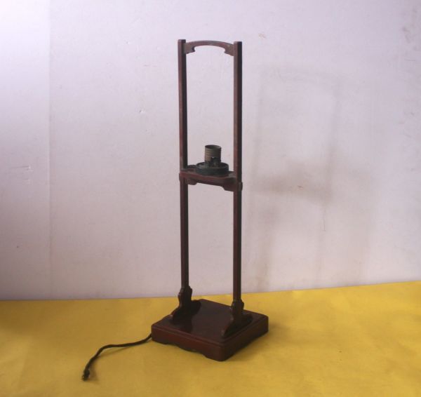 - レトロ あんどん 行灯 木製 朱塗 照明 ランプ台 ジャンク品 /20N9-12