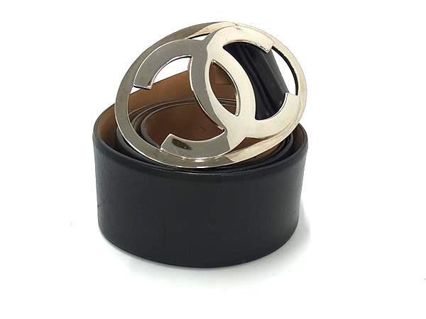 - シャネル ベルト ココマーク レザー - シルバー金具 ブラック ビジネスベルト ブランド カジュアル 高級【本物保証】