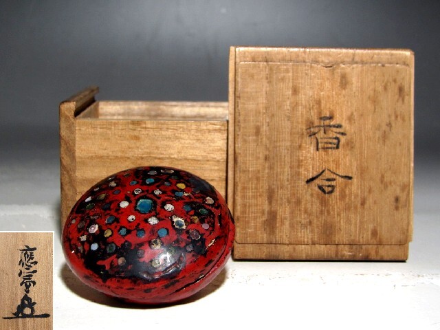 - 遠州流九代宗本造 香合「月見草」趣ある景色の逸品☆z719