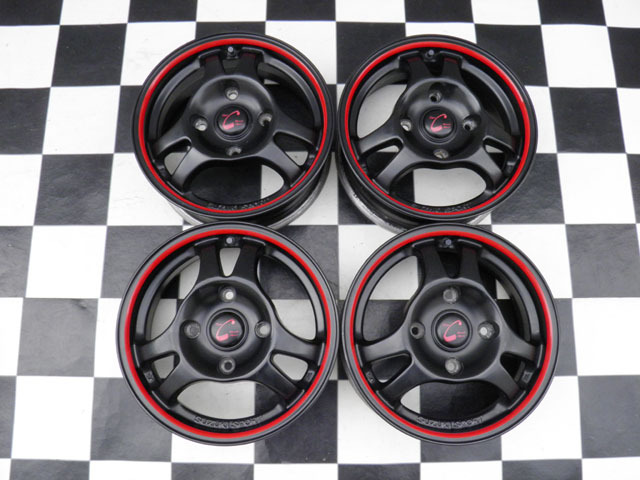> 即決/美品/SUZUKI SPORT/TYPE-C/ホイール/13×5J+45/PCD114,3/4H/タイプC/黒赤/アルミホイール/C系アルトワークス/セルボ/カプチーノ/AZ-1